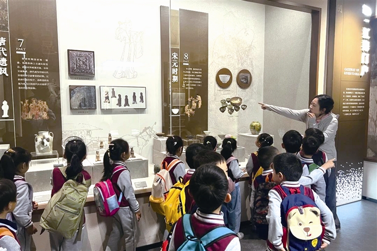 大班组的孩子们背起小书包,徒步1.6公里前往江阴市博物馆。孩子们在文物前驻足,聆听讲解,感受江阴悠久的历史文化,在一场跨越时空的文明对话中收获成长。