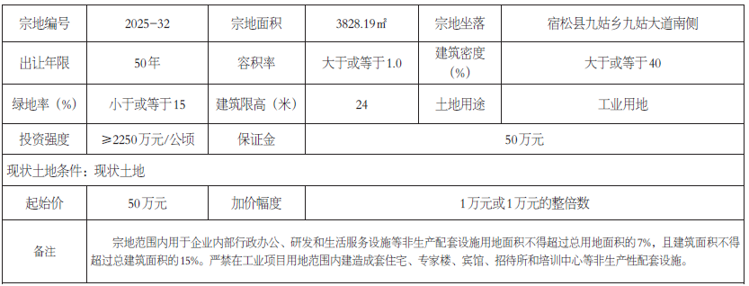 四、本次挂牌出让的详细资料和具体要求,见挂牌出让文件。申请人可于2025年9月27日至2025年10月28日到宿松县自然资源和规划局开发利用股获取挂牌出让文件。