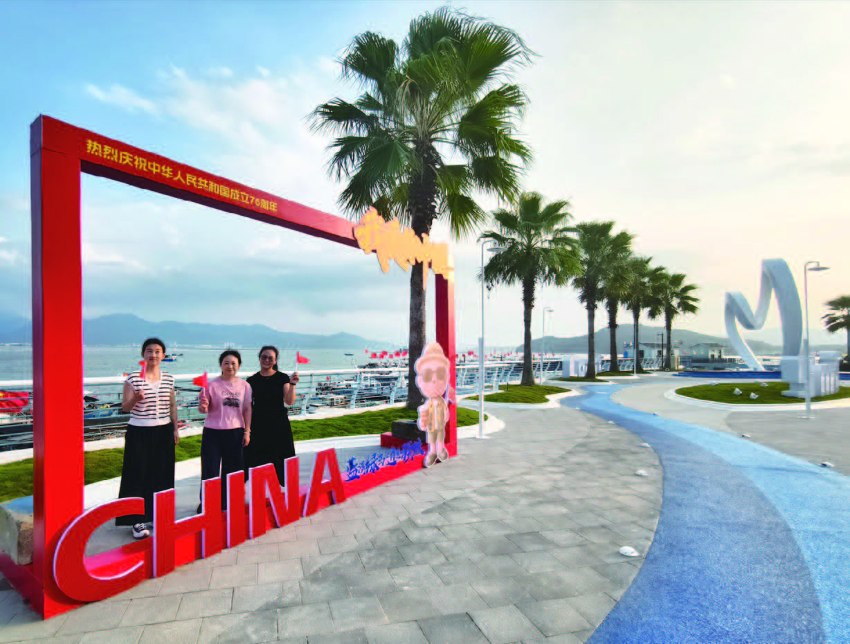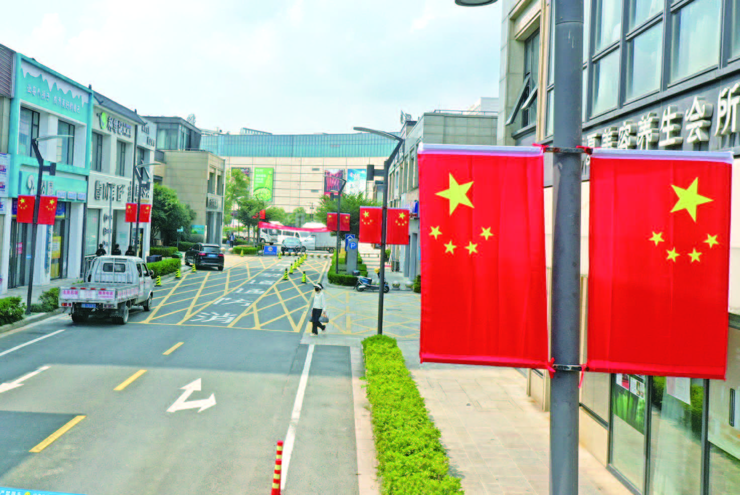 国庆将至,宁海的街头巷尾处处洋溢着“中国红”,营造出浓郁的节日氛围。左图为强蛟镇崭新亮相的“微笑海岸”广场,上图为西子国际街景。