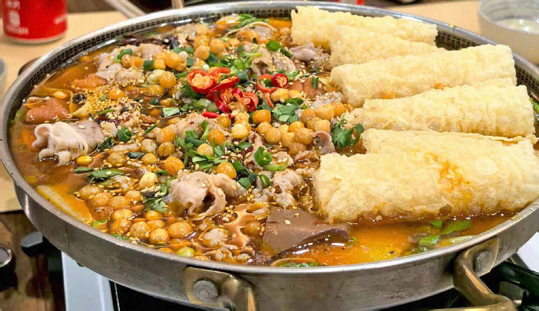夜幕低垂,食物的香气再度主宰街道。“咕鹿流心披萨”店内,薄脆饼底炙烤15分钟,榴莲披萨拉出诱人长丝。“曹二哥面馆”灶火欢腾,腰花拌面镬气十足,鱼骨汤头醇厚鲜美……
