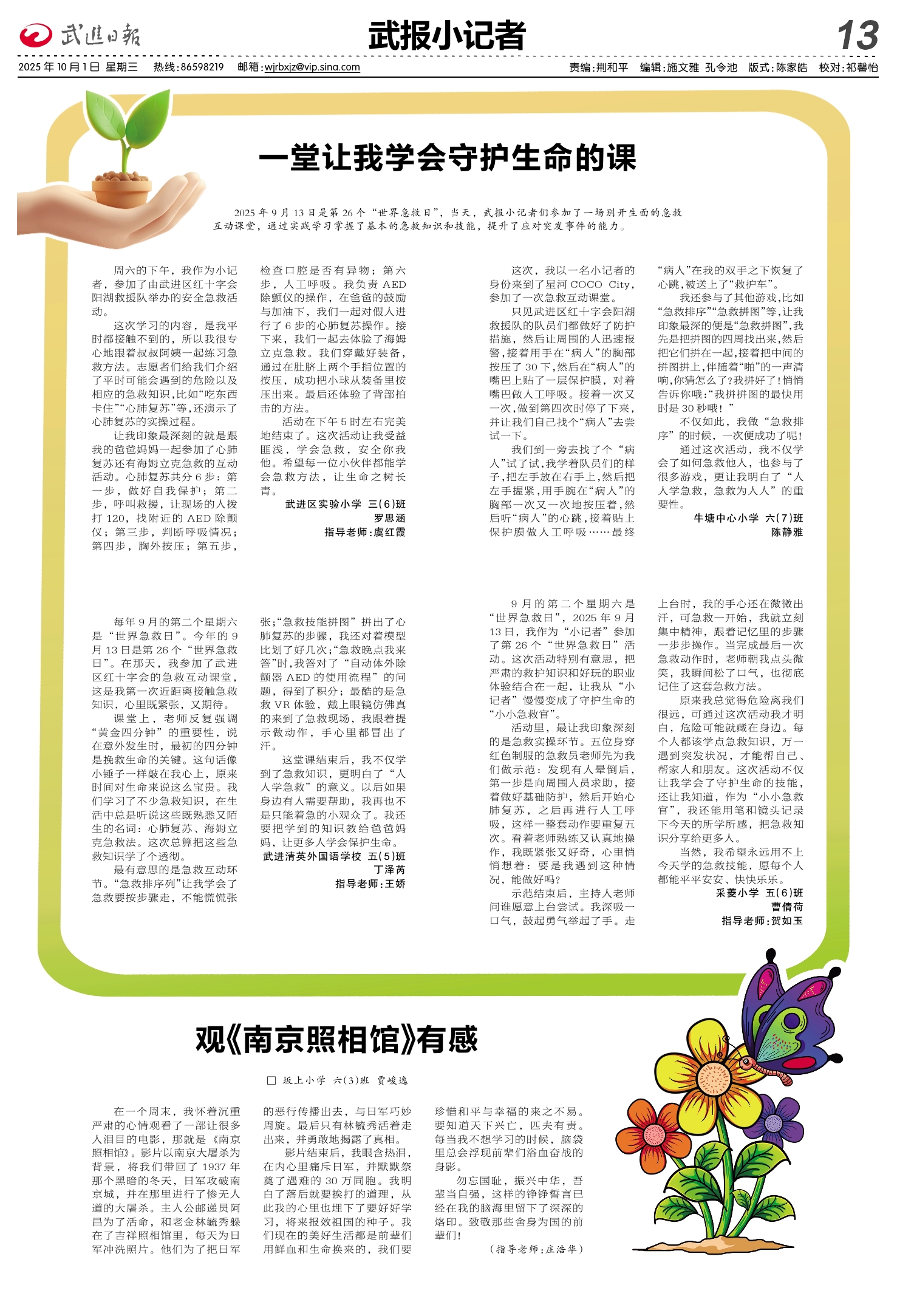 影片结束后,我眼含热泪,在内心里痛斥日军,并默默祭奠了遇难的30万同胞。我明白了落后就要挨打的道理,从此我的心里也埋下了要好好学习,将来报效祖国的种子。我们现在的美好生活都是前辈们用鲜血和生命换来的,我们要珍惜和平与幸福的来之不易。要知道天下兴亡,匹夫有责。每当我不想学习的时候,脑袋里总会浮现前辈们浴血奋战的身影。