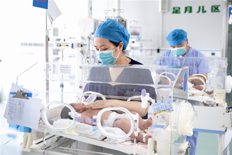 2025年5月1日,护士在河南省商丘市睢县妇幼保健院护理新生儿。