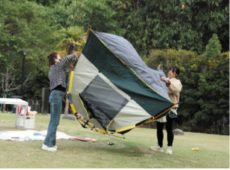 草坪另一角,一群朋友正收拾露营装备。两个女生合力把帐篷拆下,塞进收纳袋。一盘摆着的桌子上,“野餐”遗留下的“边角料”,风一吹,香味便与草木的清香混合着漫过来。