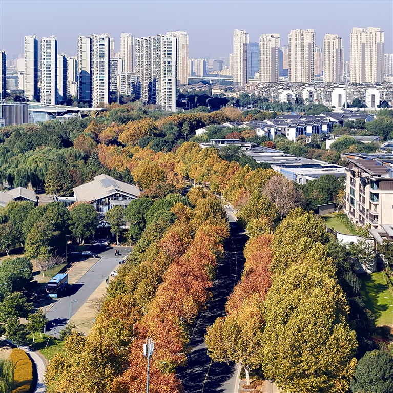 昨天上午,敔山路的行道树在阳光下蜿蜒如火龙,季节的笔触让梧桐树尽数“燃烧”,成为不少市民的冬日打卡地。