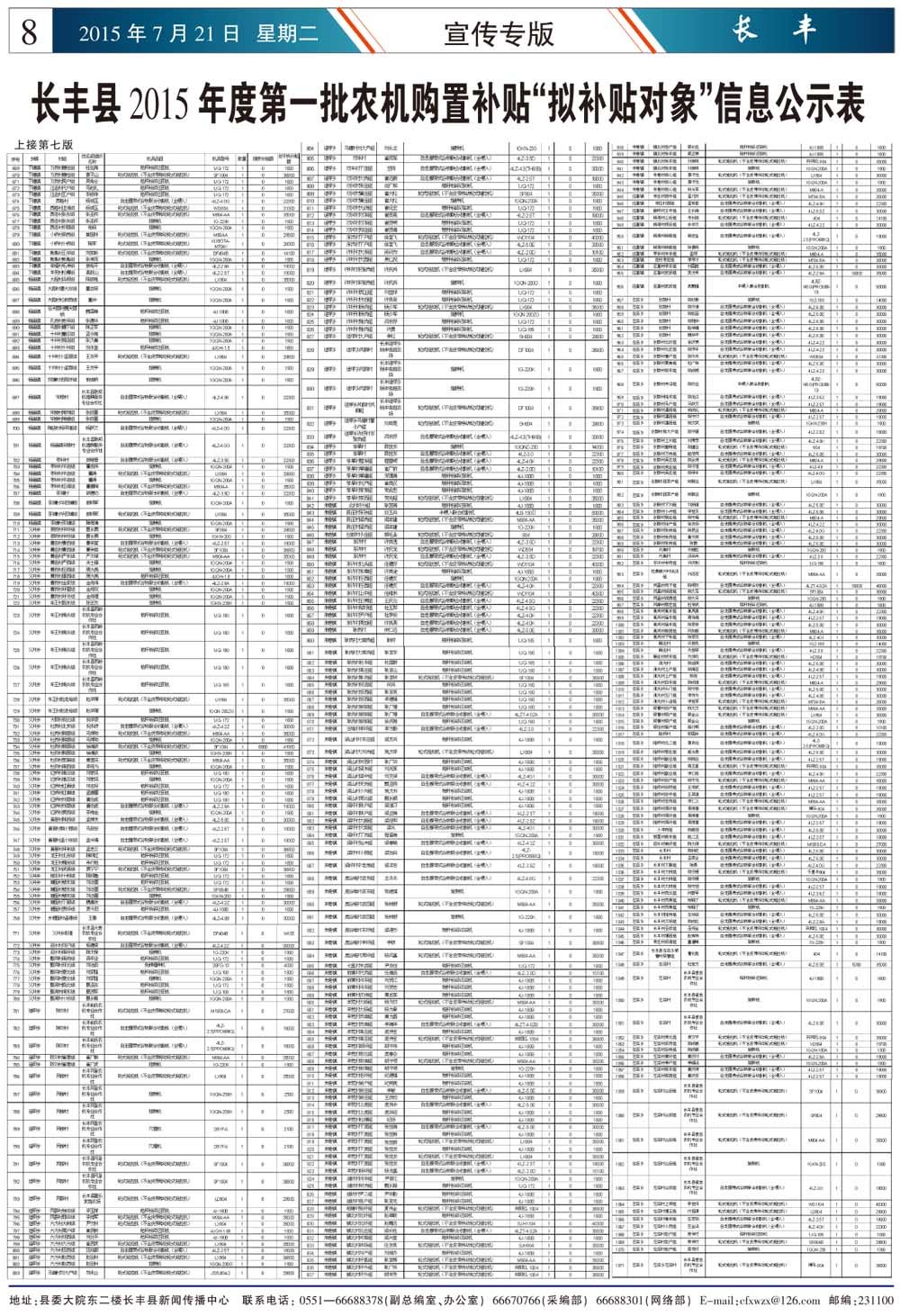 长丰县2015年度第一批农机购置补贴“拟补贴对象”公示
