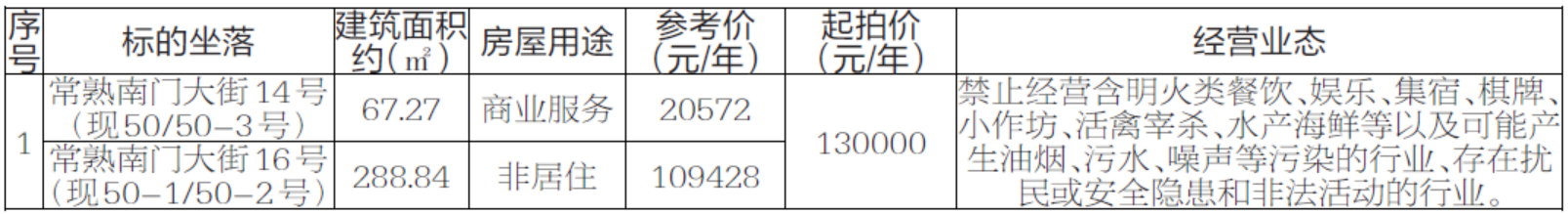 一、拍卖标的:常熟南门大街14号、16号房屋租赁权