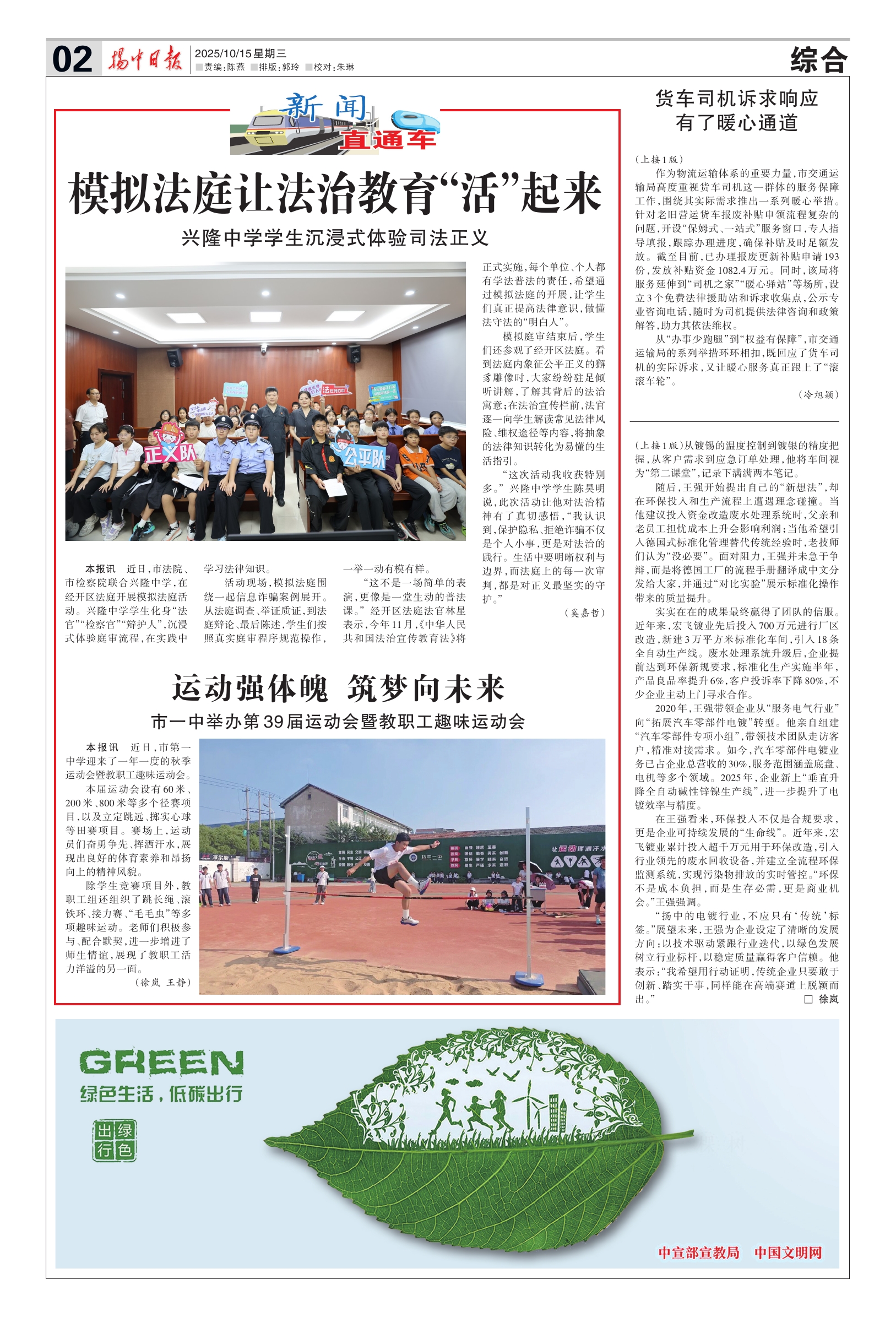 本报讯 近日,市法院、市检察院联合兴隆中学,在经开区法庭开展模拟法庭活动。兴隆中学学生化身“法官”“检察官”“辩护人”,沉浸式体验庭审流程,在实践中学习法律知识。