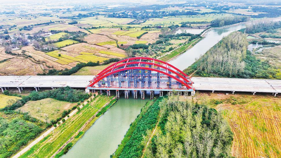 10月13日,位于小庙镇的淠河总干渠大桥主桥建设正酣。近日,淮桐高速合肥段淠河总干渠钢箱系杆拱大桥工程主桥拱肋顺利合龙,标志着该大桥主体结构施工取得突破性进展,为后续主桥工程收官奠定坚实基础。